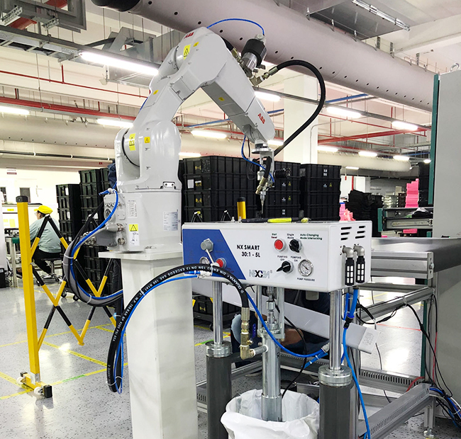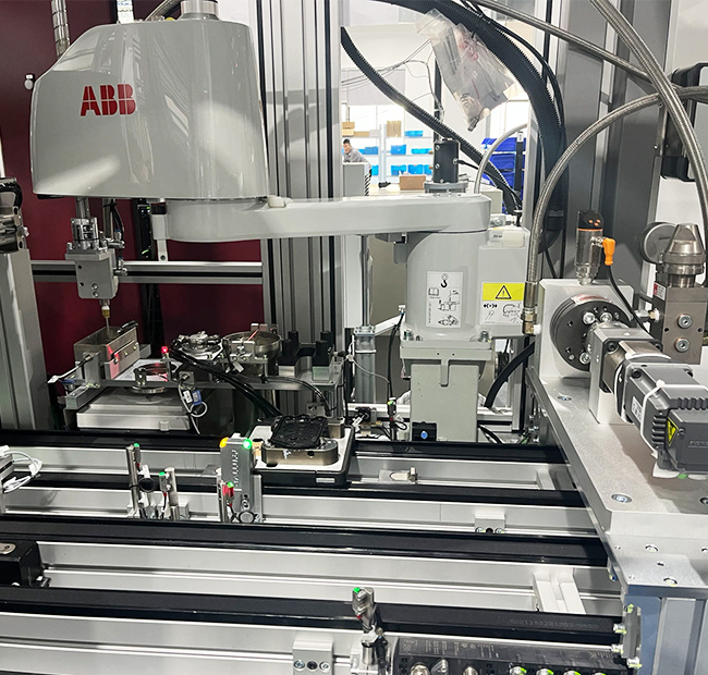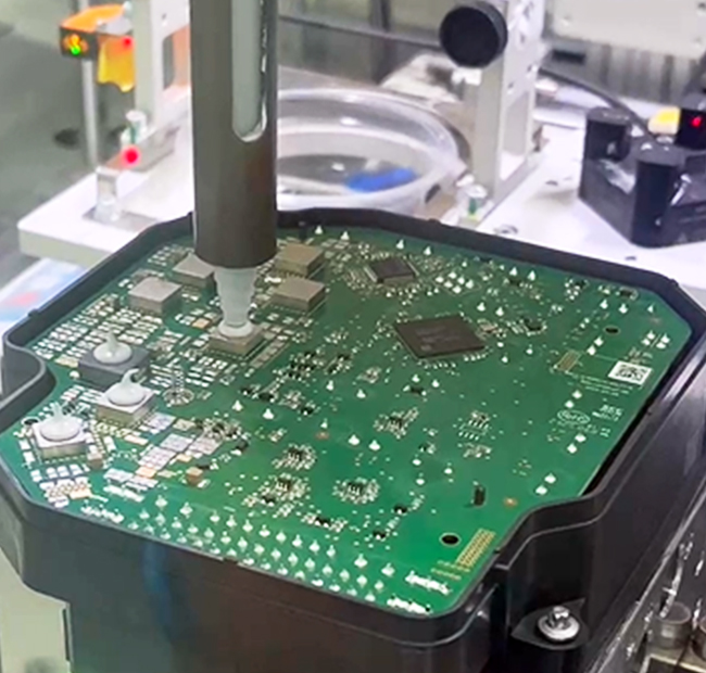 進(jìn)行精密涂膠操作,如涂膠存在角度問(wèn)題,可考慮用四軸方案解決。